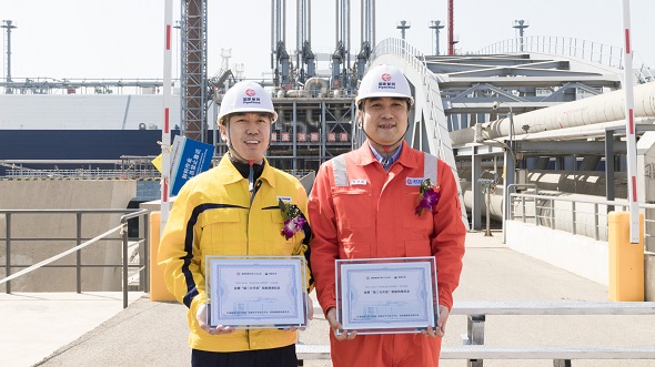 ENN and the national pipeline network Tianjin receiving station jointly held the first LNG unloading and launching ceremony. Zhang, LinSong, general manager of the Tianjin receiving station of the National Pipeline Network, and Yin, Ming, deputy general manager of ENN's intelligent trade & transportation group, exchanged commemorative nameplates on behalf of both parties.
