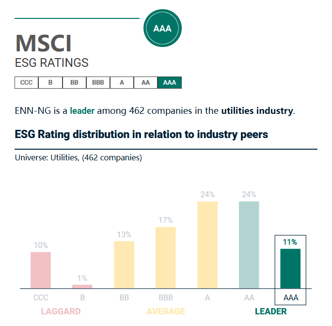 Recently, MSCI (Morgan Stanley Capital International), a globally renowned index provider, announced its 2024 ESG (Environmental, Social, and Governance) rating for ENN Natural Gas Co., Ltd. (“ENN NG” or the “Company”, stock code 600803.SH). The company was awarded the highest rating of AAA for the outstanding performance in ESG initiatives. ENN NG is the first and only Chinese utility company to achieve the MSCI AAA rating, and one of only 18 Chinese companies to hold this prestigious distinction.