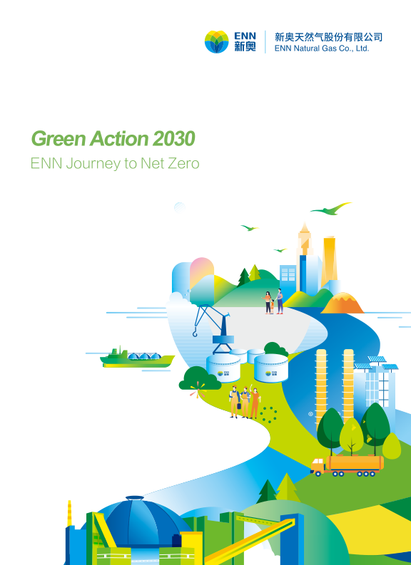 The “dual carbon” goals show-case China’s determination to achieve carbon peak by 2030 and carbon neutrality by 2060.Every enterprise has the re-sponsibility of responding to the national “dual carbon” call, and should seize the broad develop-ment opportunities. On the path towards “dual rbon” goals, the green reform in the energy sector and transition to renewable ener-gy offer important approaches.ENN Natural Gas Co., Ltd (here-after referred to as ENN Natural Gas, the “Company” or “we”) will resolutely seize the new oppor-tunities of natural gas market reform and nergy transition,formulate medium and long-term green action objectives, continu-ously improve the energy struc-ture through innovation, promote the green reform, build a system-atic green industrial system, and facilitate carbon emission reduc-tion across the industry chain and the whole society.